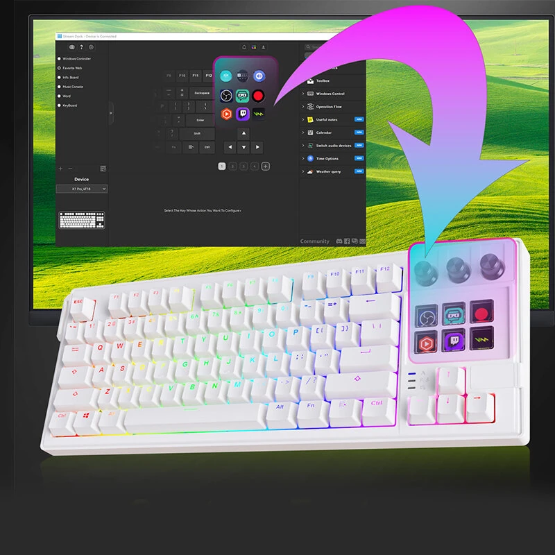 K1 Pro AI Wired Mechanical Gaming Keyboard with 3 Knobs and 6 LCD Keys Hot-swappable Gasket Sturcture RGB Light Gamer Keyboards