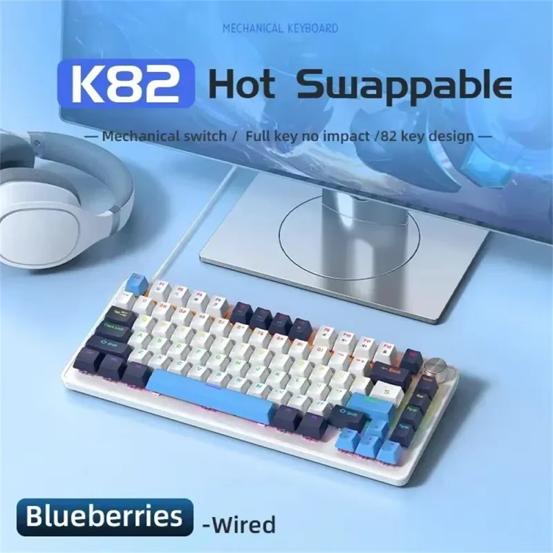 K82 Type-C Wired Mechanical Keyboard with Knob 75% Layout PCB Hot Swappable Backlight 82 Keys Multifunctional Gaming Keyboard