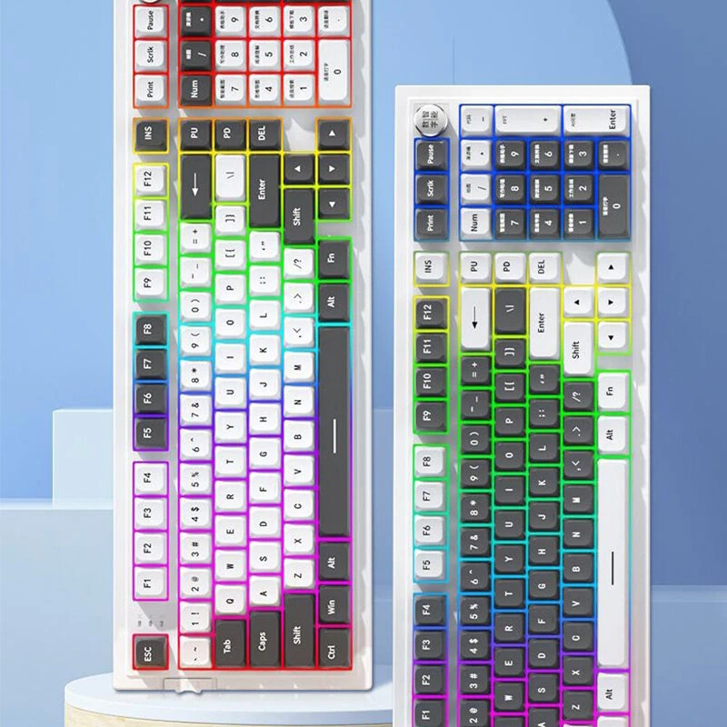 Venfish N98 Tri-mode AI Mechanical Keyboard with Knob Red Switch 100keys Hot-swap Gasket Structure RGB 4000mAh Battery 2.4G/bluetooth5.0/Type-C Wired Keyboards