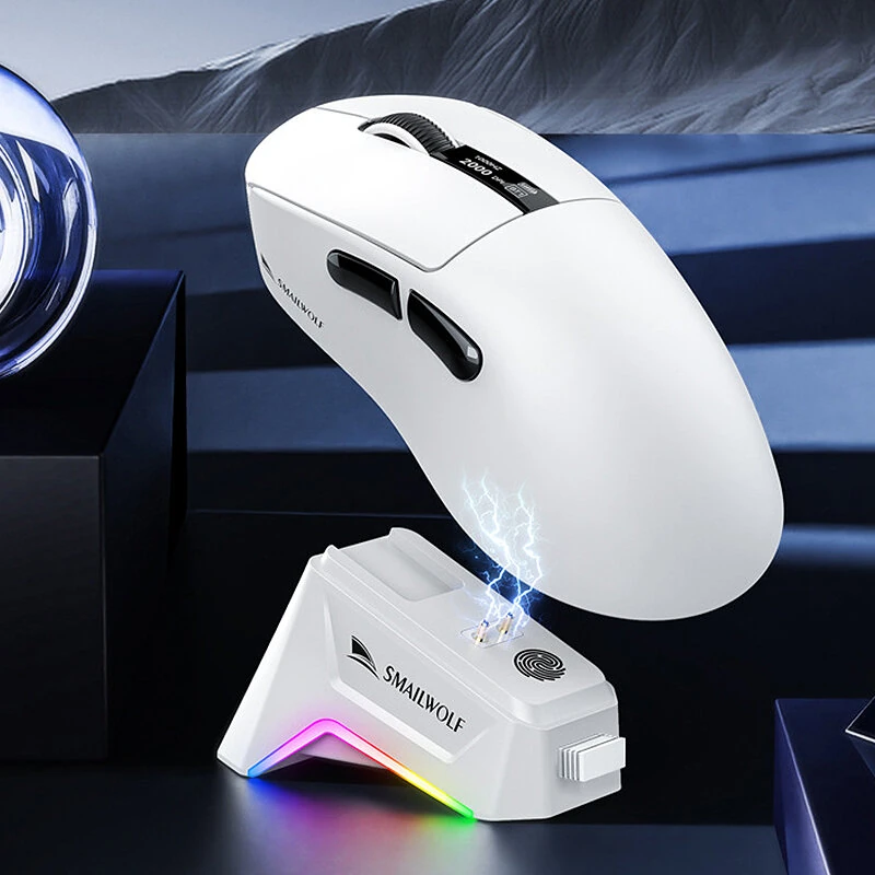 Smailwolf M6 Wireless bluetooth Mouse Tri-mode Gaming PAW3311 Sensor Mice 57g Lightweight Digital Display 1KHz Return Rate Magnetic Charging for Computer Laptop Gamer Mice with RGB Charging Dock