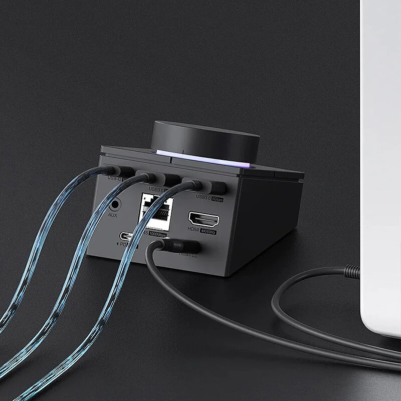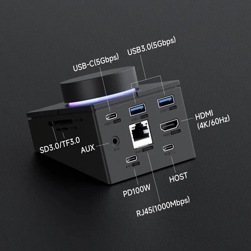 Hagibis Knob USB-C Hub with Shortcut Buttons Type-C RGB Docking Station with 5Gbps USB3.0*2 / 5Gbps USB-C / PD100W USB-C / HOST / 4K@60Hz HD / 1000M RJ45 / SD3.0/TF3.0 Volume Adjustment Desktop Controller for Macbook Win Laptop