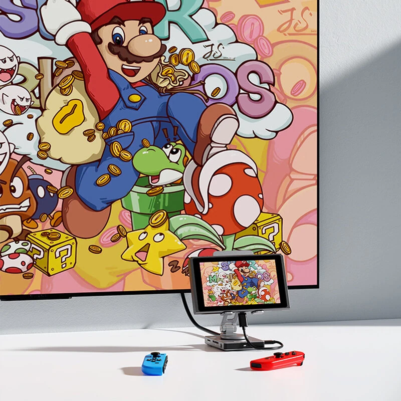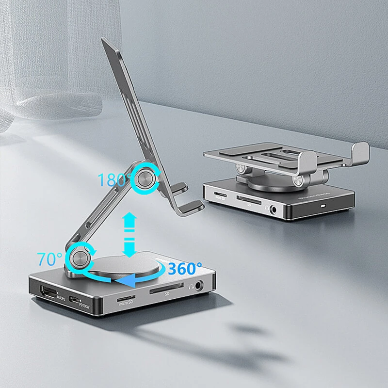 ST803 8-in-1 Switch 2 Phone Stand Base Dock Station Multiport Aluminum Alloy Extension Bracket Foldable Design Compatible with Phone Switch Tablet Steamdeck