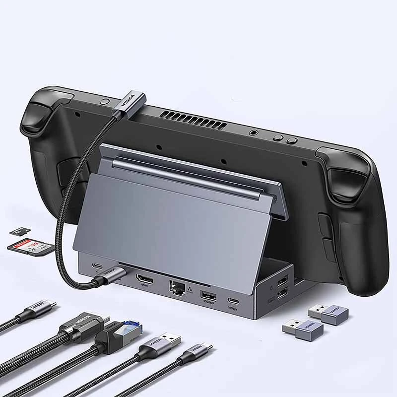 UGREEN CM800 9-in-1 USB-C Docking Station with USB2.0 4K60Hz RJ45 1000M PD100W USB-C 10Gbps USB-A 10Gbps SD&TF Card Slots Compatible with Steam Deck ROG Ally for iPhone 16 16 Pro 15 Pro Max