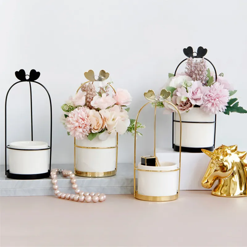 Nordic Vase Hanging Basket Wrought Iron Flower Pot Hanging Iron Frame Flower Stand Hydroponic Flower Pot Modern Wall Decoration Decoration