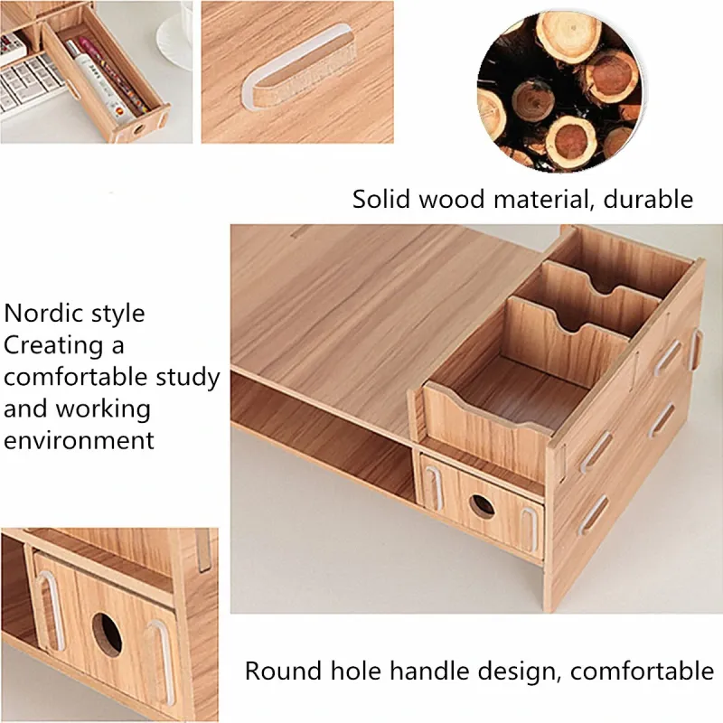Wooden Monitor Bracket Stand Desktop Storage Shelf Laptop Stand Computer Screen Rack Desk PC Riser Holder Organizer