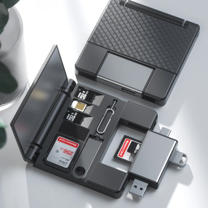 7-in-1 Multifunctional Card Reader Storage Box SD Card Micro SD Card Case OTG Adapter USB2.0 Type-C Adapter Card Storage Box