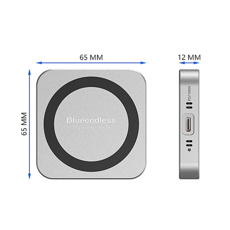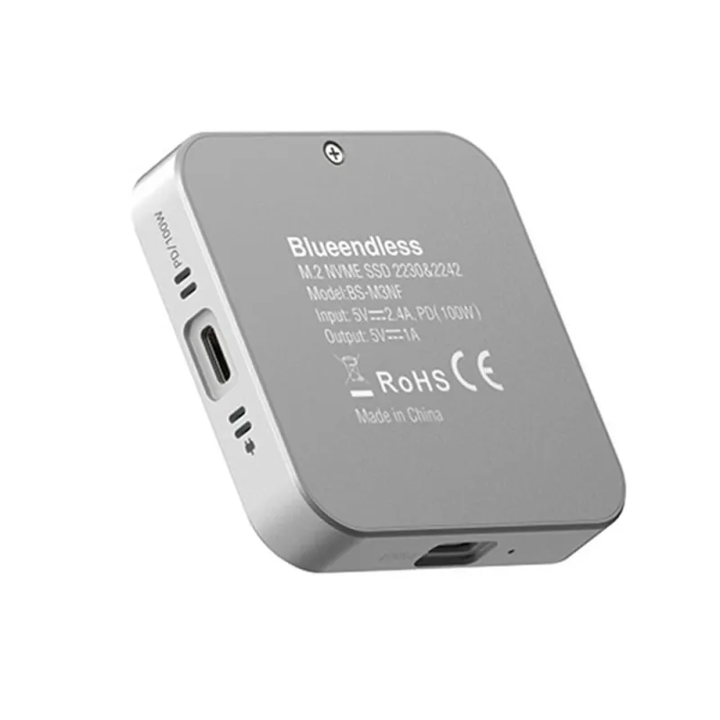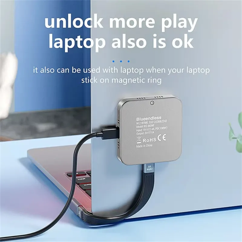 Blueendless Magnetic M.2 2230 2242 NVMe SSD Enclosure with Cooling Fan 100W PD Charging Type-C NVMe PCIE SSD Case