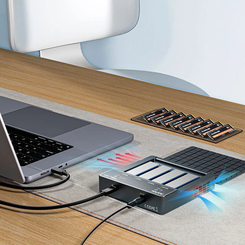 MAIWO K2024 4 Bay M.2 NVMe SSD Enclosure with USB4 Port 40Gbps High Speed SSD Case with Colling Fan Support 1-to-3 Offline Clone for 2230/2242/2260/2280 Hard Drive