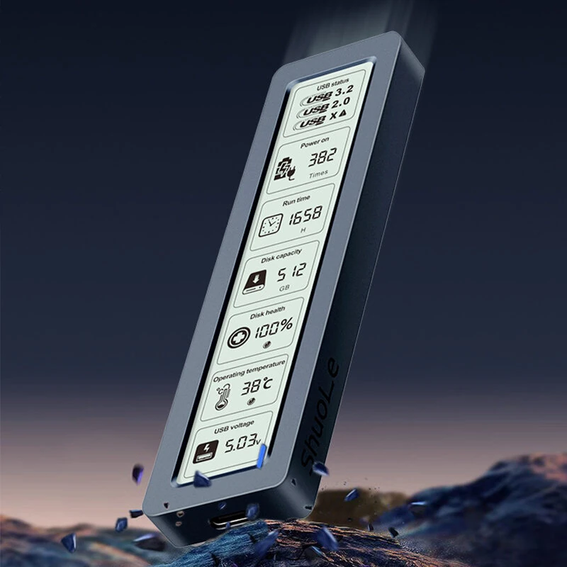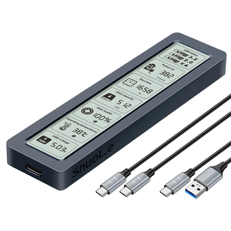 ShuoLe SL-TP26-P M2 NVMe SSD Enclosure with Digital Display USB 3.2 Gen2 Type-C 10Gbps High Speed Aluminum Alloy Heat Dissipation Real Time Monitoring External SSD Case