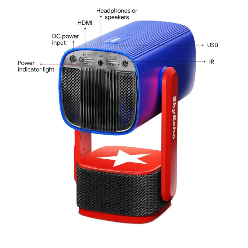 [US Direct}SkyEcho FreeONE Ceiling Projector 1080P Supported 350Ansi Lux Android TV Auto Focus Auto Keystone Correction 270 Adjustment Built-in Audio WIFI6 Cast Screen Mini LED Projector Portable Outdoor Movie