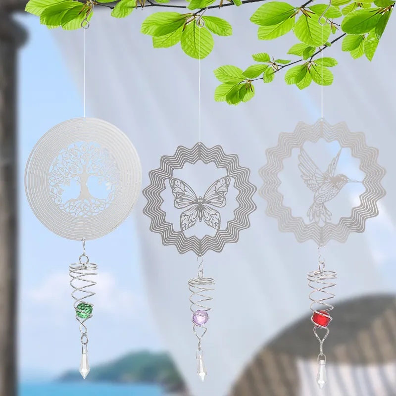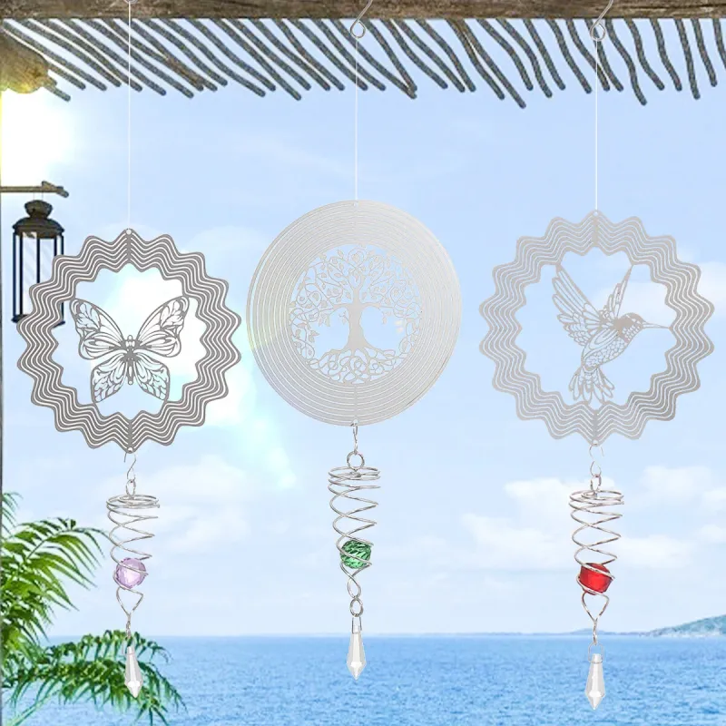 3D Metal Wind Spinner Stainless Steel Rotating Metal Chimes Animal Pattern Stereo Wind Chime Rotary Pendant For Home Decoration