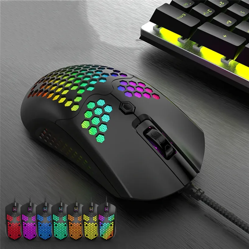ZIYOULANG M5 Wired Game Mouse Breathing RGB Colorful Hollow Honeycomb Shape 12000DPI Gaming Mouse USB Wired Gamer Mice for Desktop Computer Laptop PC