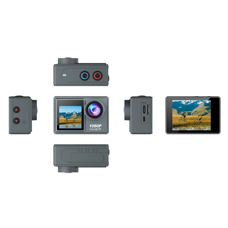 1080P Action Camera with 2.0inch Display Dual Colorful Screen 140 Wide Angle IP68 30m Waterproof Sport Camera with Wifi Connection Helmet Video Cam
