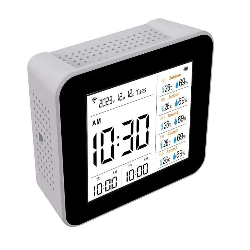 13 in 1 Tuya WIFI Intelligent Thermometer Hygrometer Indoor Accurate Temperature Humidity Gauge Monitor with Time/Calendar/Alarm Display Support Remote APP Control for Home Office