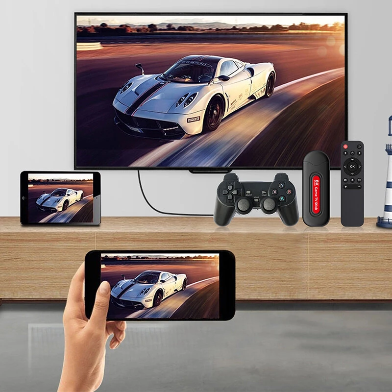 64G GAMESTREAM Q9Pro Android TV Game Stick with Dual Wireless Gamepads Amlogic S905Y2 36000+ Games Built-in Chromecasts Support WiFi-6 2-in-1 TV Game Player Console Set