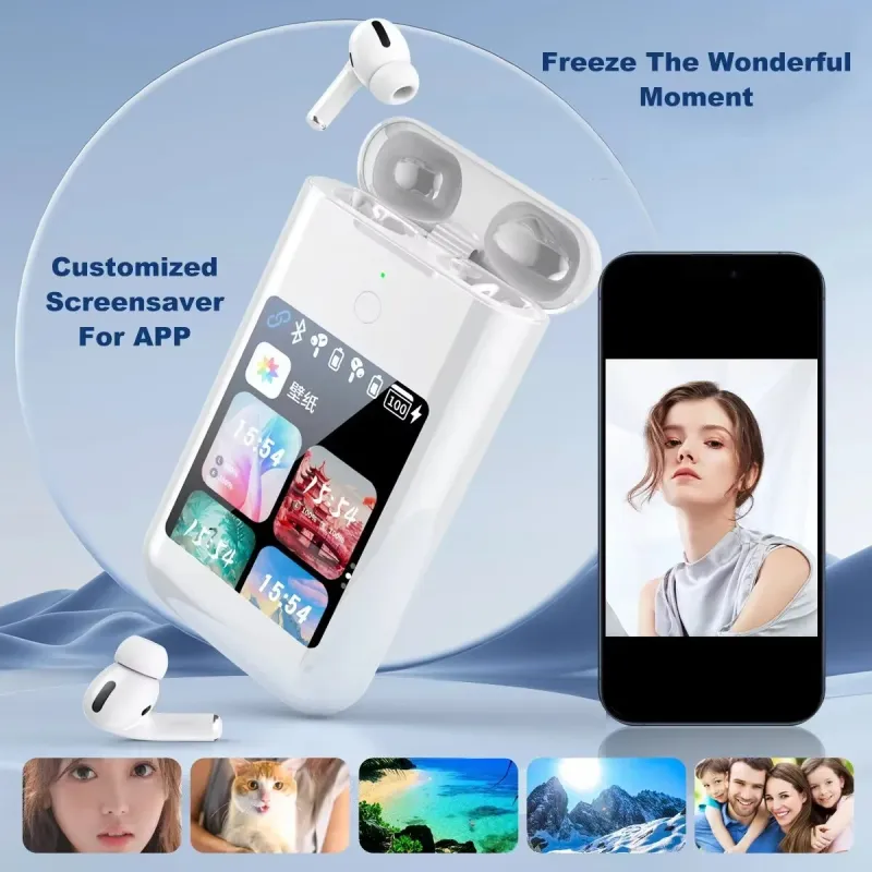 A98BOX 3-in-1 TWS bluetooth Earbuds Charging Power Bank Earphone with 2.8-inch HD Screen 13mm Moving Coil ENC Noise Cancelling 8000mAh Battery Multimedia Player Portable Earbuds Built-in Flashlight