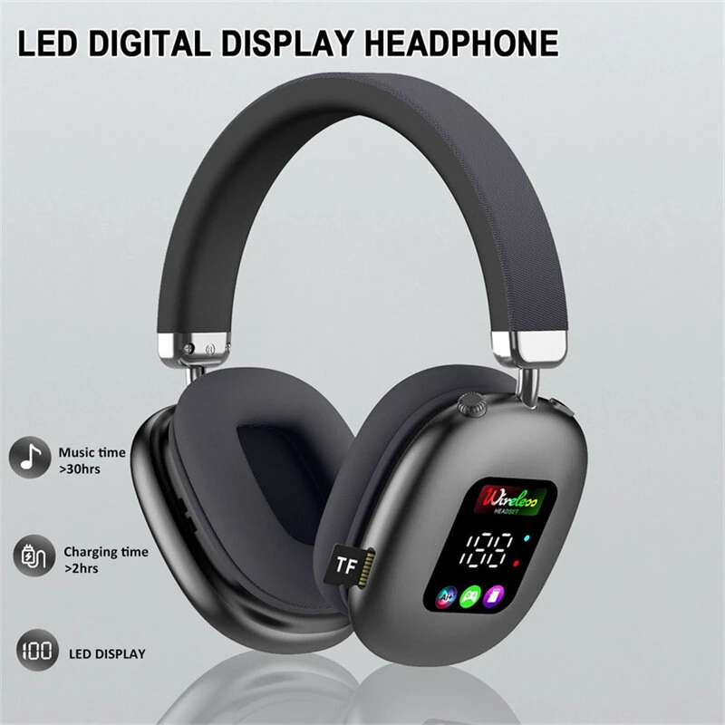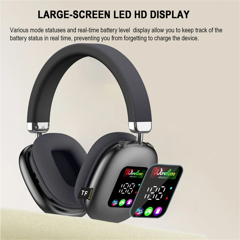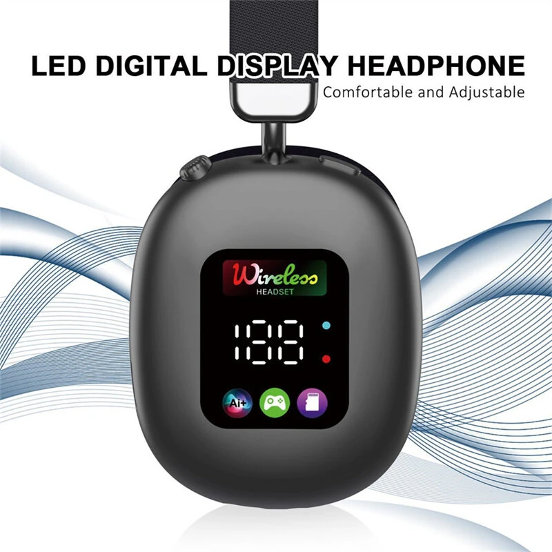 AKZ616BT Bluetooth Headphones RGB Digital Display Screen Headset 40mm Speaker HiFi Bass Driver 30H Long Battery Life Adjustment Low Latancy Headphones with Mic