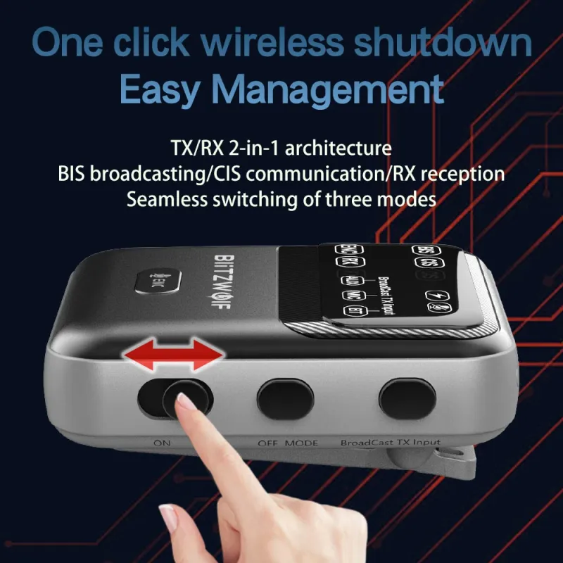BlitzWolf BW-LE523 2 in 1 Audio Adapter Bluetooth V6.0 Receiver Transmitter Clip-on Design AAC LC3 ENC Wireless Broadcast Adapter One with Multiple Audio System