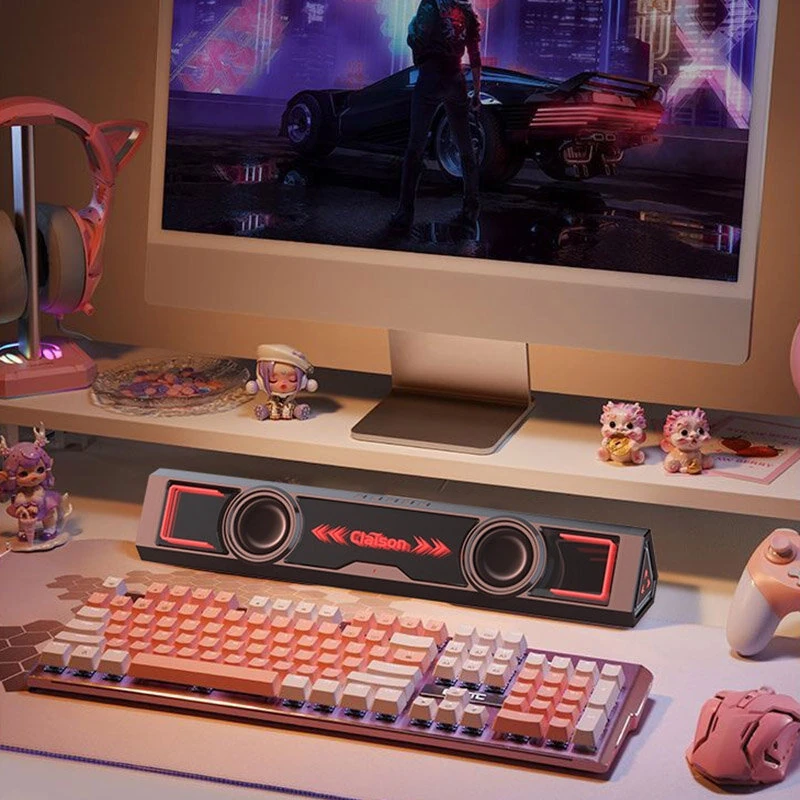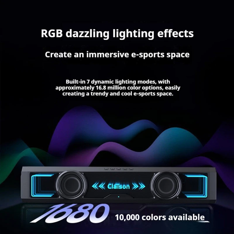 Claison Desktop Computer Soundbar Wired bluetooth 5.4 Speaker RGB Lighting Dual 52mm Full-frequency Coil Unit Deep Bass Built-in HD Microphone USB Wired Subwoofer Speaker