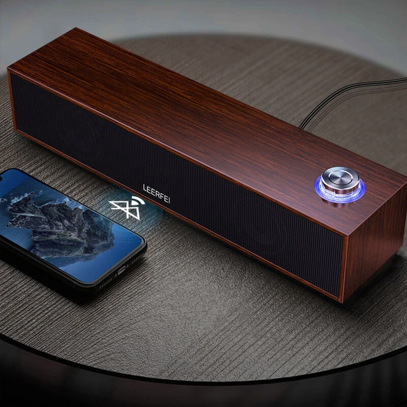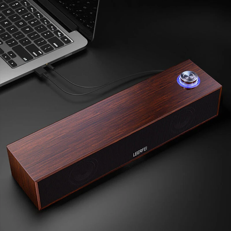 E350MB Wired bluetooth Soundbar Wooden Computer Speakers with Volume Knob Dual Speakers Deep Bass Support 3.5mm AUX Speaker Soundbar