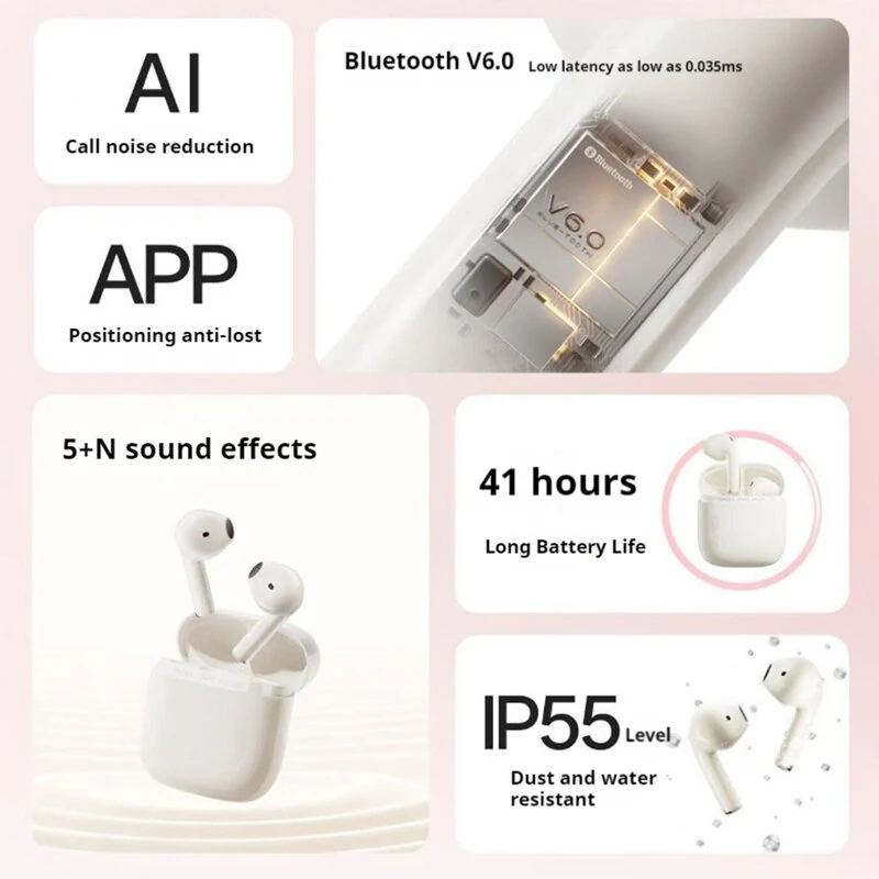 Edifier HUAZAI Zero Air Pro TWS Earphone bluetooth V6.0 Earphone 13mm Fine-tuned Large Unit 41H Playback Low Delay IP55 Waterproof Half-in-ear Sports Headphones
