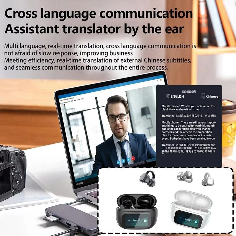 G08 Translator Earbuds Wireless bluetooth 5.4 Earphone LED Touch Screen 13.2mm Dynamic Drivers Bass Sound Instant Translation Earclip Open-ear Headphones
