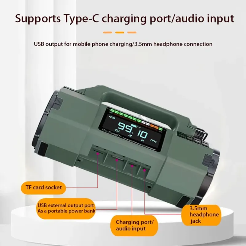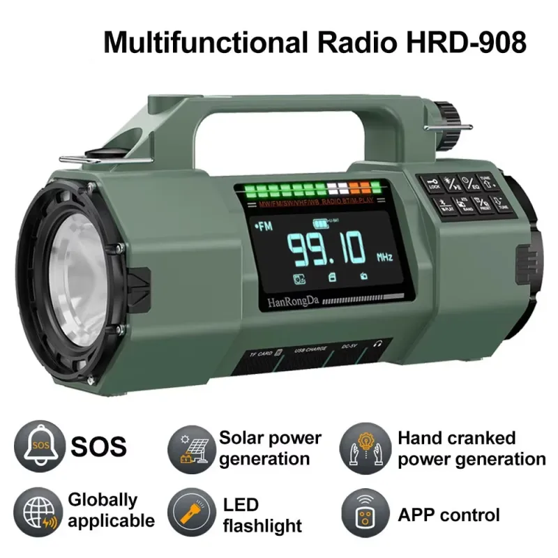 Hanrongda HRD-908 Hand Crank Emergency Radio with SOS Alarm LED Flashlight bluetooth Speaker Solar Powered Radio Portable Radio for Home Outdoor