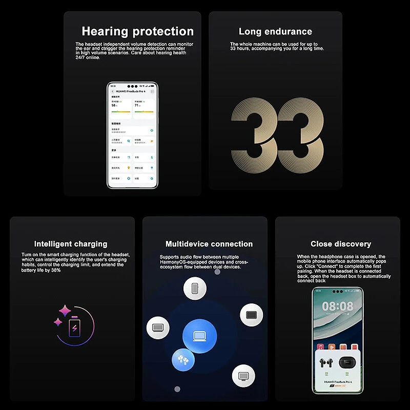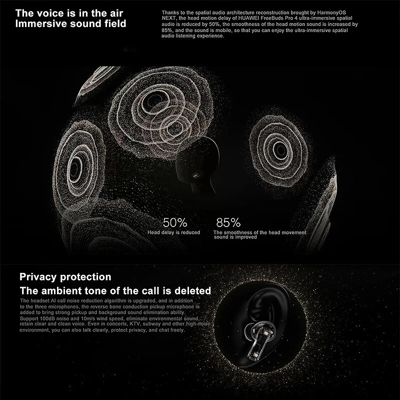 Huawei FreeBuds Pro 4 Wireless bluetooth Earphone ANC Earbuds LDAC Hi-Res Audio AI Call Noise Cancelling 33H Playback Smart AI Interactive Connection In-ear Sports Headphones