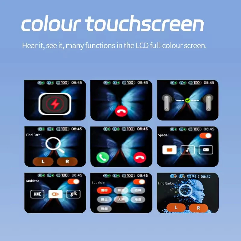JM19 TWS Earbuds bluetooth 5.4 Earphone LCD Touch Screen Smart Control Mini Portable Music In-ear Sports Headphones