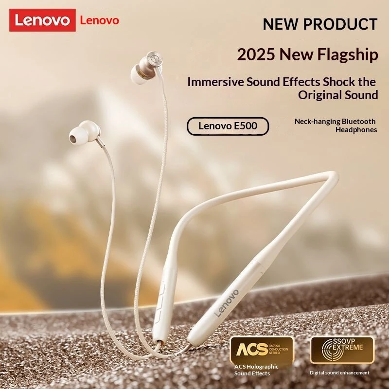 Lenovo E500 Neckband Earphone Wireless bluetooth 5.4 Headphone 10mm Drivers Ultra-CD Level Sound Wireless Earphone 18H Playtime Sports Earphones