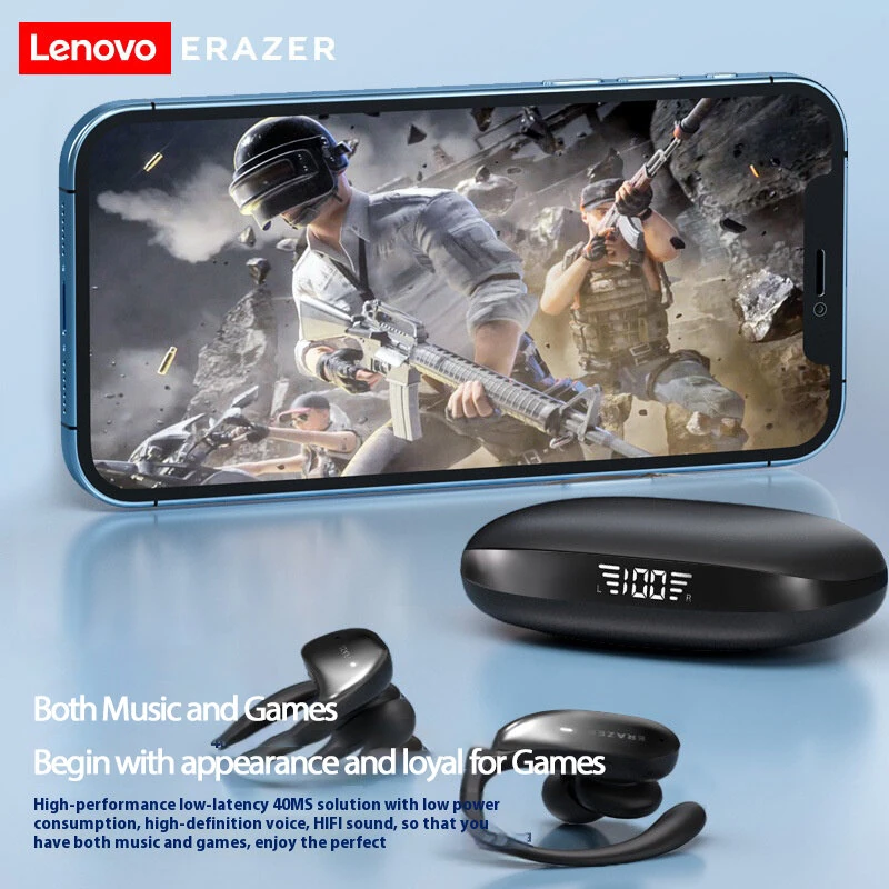 Lenovo ERAZER XT80Pro TWS Gaming Headset Wireless bluetooth 5.4 Earphone 10mm Composite Diaphragm AAC Audio LED Digital Display 30H Playback Low Game Delay Earhooks Sports Headphones