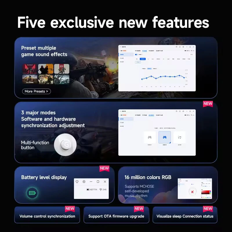 MCHOSE X9 Gaming Headset bluetooth Headphone 53mm Large Drivers 7.1 FPS Surround Sound 2000mAh Battery 15ms Low Delay Soft Protein Leather Earmuffs 2.4G Wireless Headphones with External Noise Cancelling Microphone
