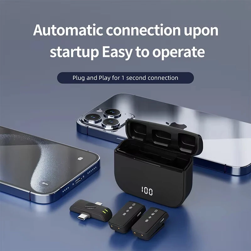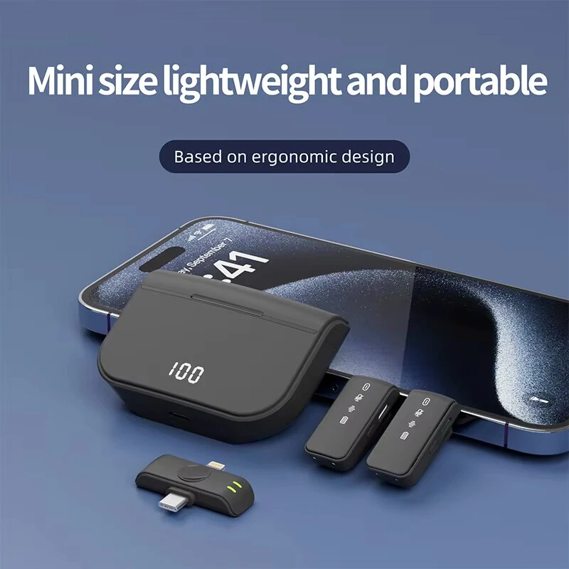 H61 1 to 2 Wireless Lavalier Microphone with iP/Type-C Dual Interface Receiver Digital Display Noise Cancelling Omnidirectional Lapel Mic for Live Broadcast Mobile Phone Tablet