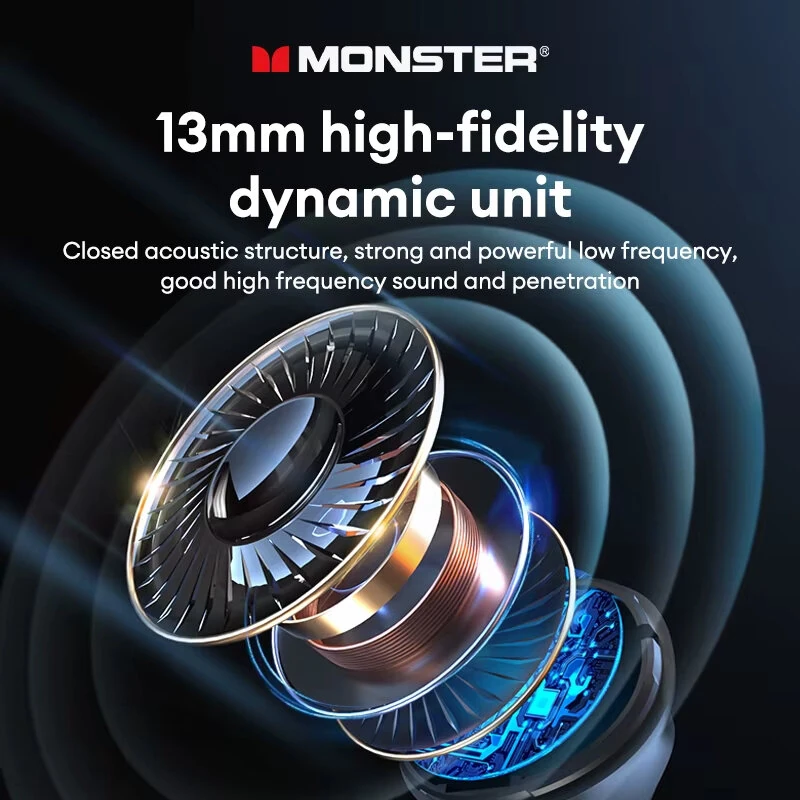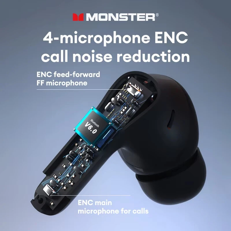 Monster D02 TWS Earbuds Wireless bluetooth V6.0 Earphone 4-Mic ENC Call Noise Cancelling 13mm Drivers 24H Playback Low Delay Sports Headphones