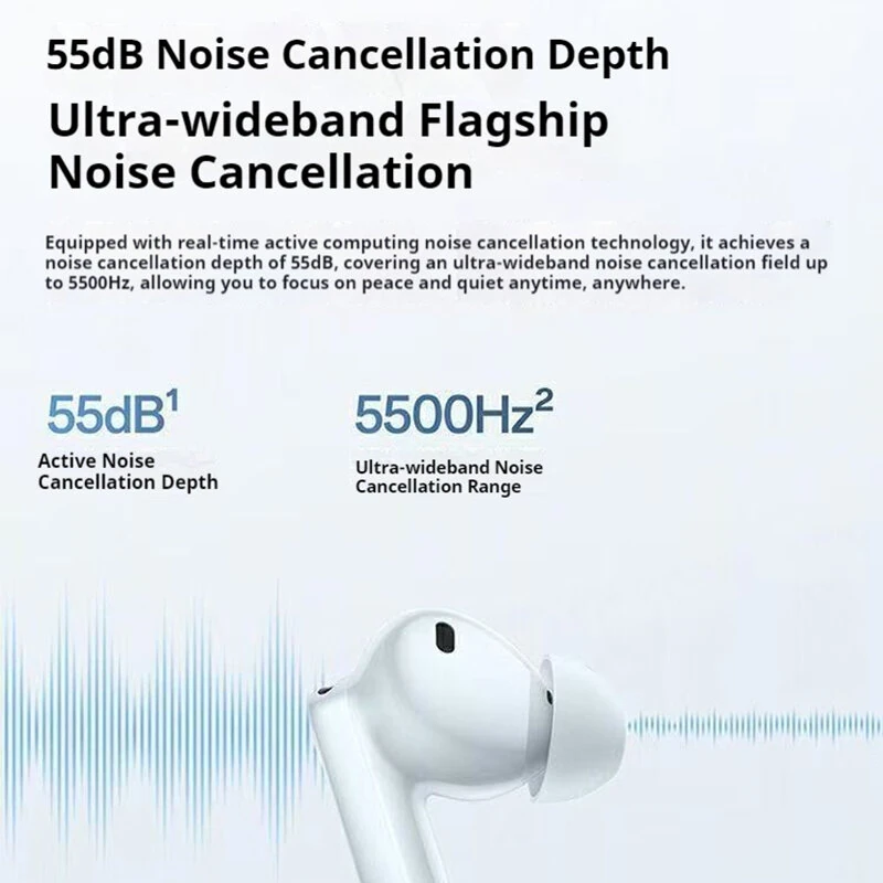 OPPO Enco Free4 TWS bluetooth 5.4 Earbuds ANC Earphone Dual Coaxial Drivers Dual DAC LHDC5.0 Hi-Res Audio -55dB Depth Noise Cancelling 3-Mic AI Call Noise Reduction 45H Playback AI Smart Translation Sports Headphones