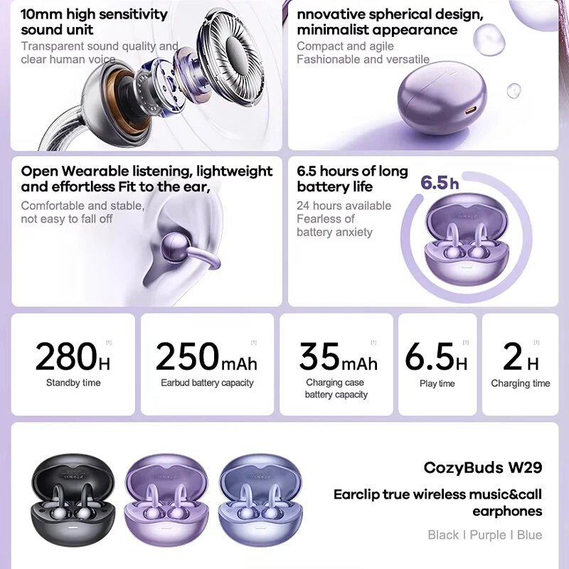 REMAX CozyBuds W29 OWS Earclips Earbuds Wireless bluetooth Earphone Stereo Open-ear Ergonomics Mini Ligth Portable Headphones with Mic