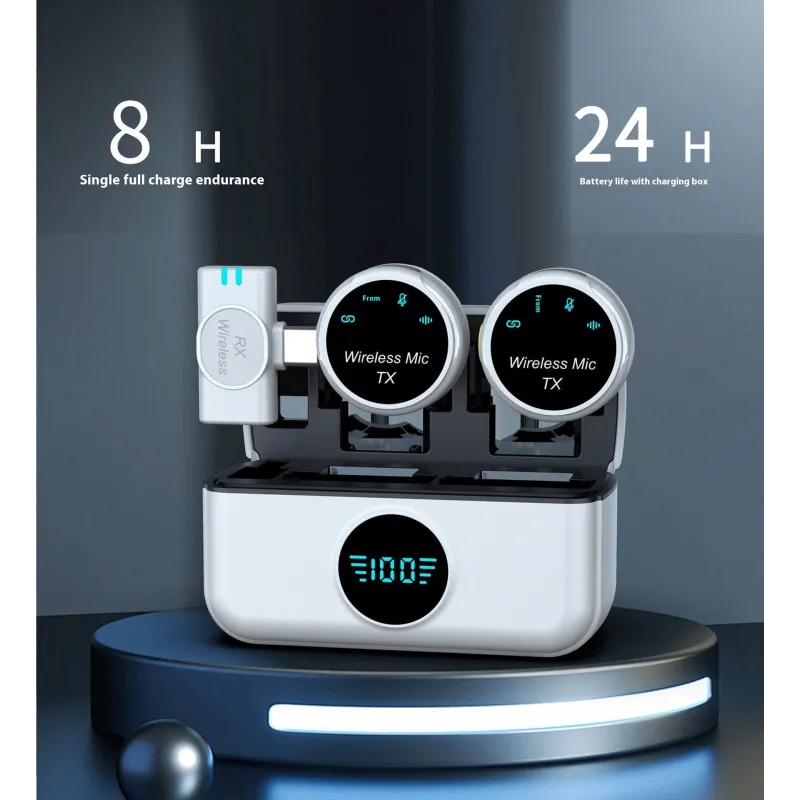 S5 Wireless Microphone Magnetic Lavalier Microphone with Charging Case 2.4G DSP Noise Cancelling Microphone 24H Battery Type-C Interface Transceiver for iPhone Android YouTube TikTok