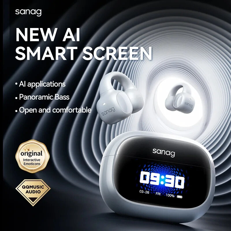 Sanag S3 Pro TWS bluetooth Headset AI Smart Screen Earphone LED Touch Screen 360 Stereo Bass DT6.0 AI Noise Cancelling 50H Playback Earclips Wireless Headphones
