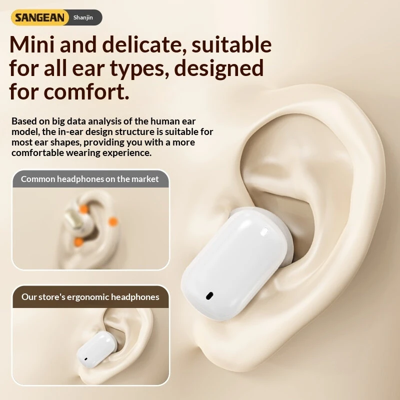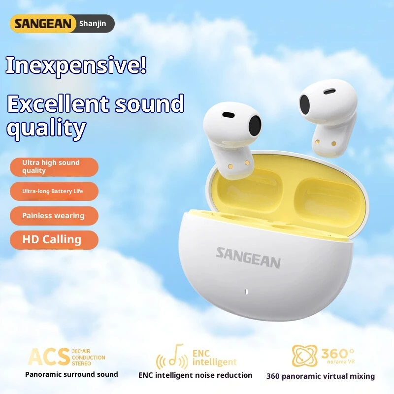 Sangena A16 Wireless Bluetooth V5.4 Earbuds Half-In-Ear EQ Sound Stereo 36H Long Battery Life Low Latency Headphones