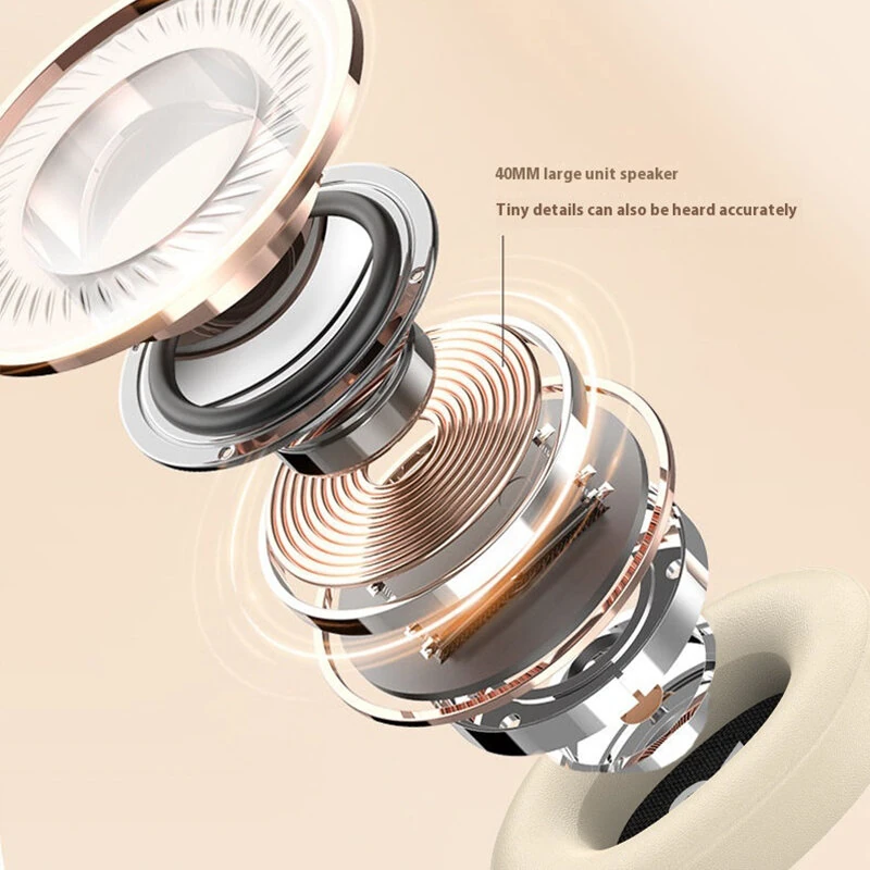 Wireless bluetooth Headset 40mm Large Driver HiFi Sound 12H Playback Soft Earmuffs Built-in Mic Support AUX TF Card Playback Portable Headphones
