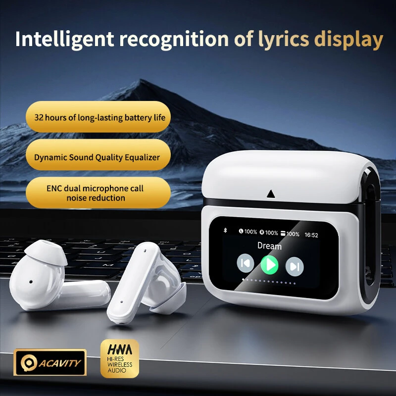 XH11 TWS Earbuds Wireless bluetooth 5.4 Earphone with LCD Touch Screen 13mm Driver Unit Dual Mic 32H Playback Touch Control In-ear Sports Headphones