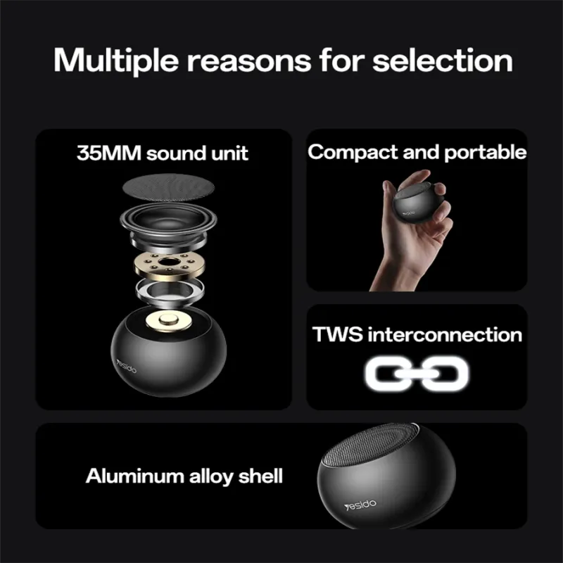 Yesido YSW33 Wireless Bluetooth Speaker Small Steel for Cannons Speaker 35MM Speaker Full-Range Unit Bluetooth Speaker