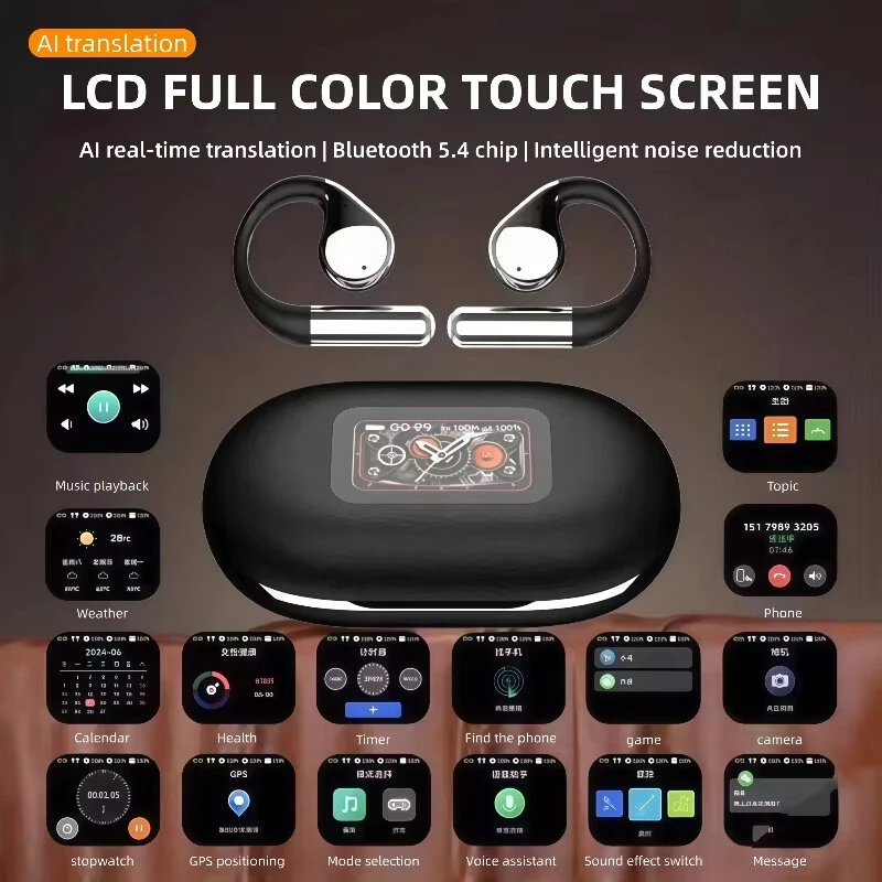 YYK LY19 AI Translation OWS Wireless Earbuds bluetooth 5.4 Earphone with LCD Touch Screen CVC Call Noise Reduction High Frequency Diaphragm Driver 480H Battery Life Soft Silicone Earhooks Sports Headset