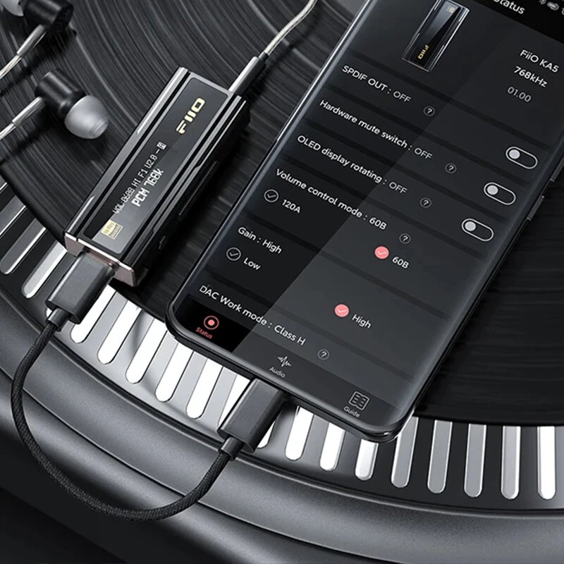 FIIO KA5 Portable DAC Headphone Amplifier OLED Display Dual CS43198 DACs Dual 8261 Amps Hi-Res PCM 768khz DSD256 3.5mm 4.4mm Audio Headphone Amp for Android IOS WIN10