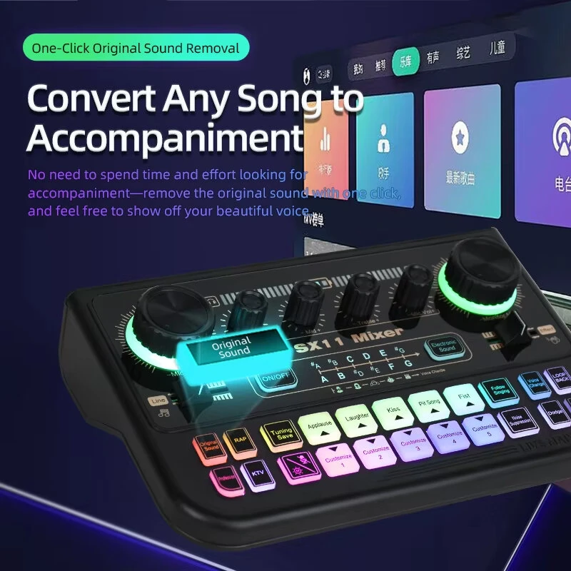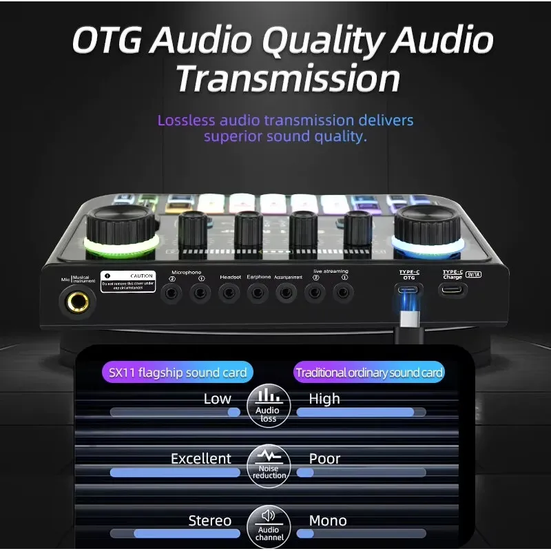FUHAM SX11 Professional Mixing Grade Sound Card Audio Interface Sound Card 48V Power Live Streaming Recording Podcast Studio for YouTube Computer/Phone Sound Card Plug and Play