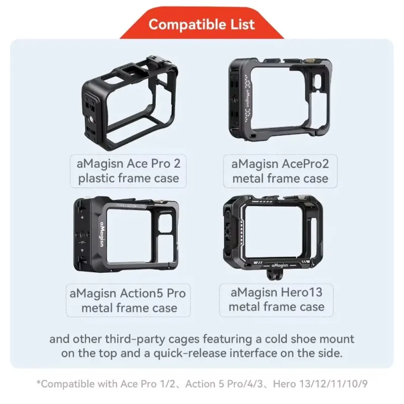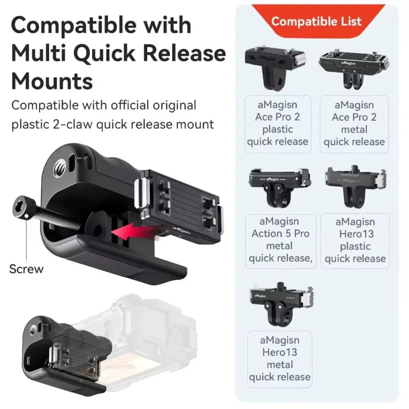 aMagisn Action Camera Grip Handle Shutter Button Quick Release StreetGrip Vlog Holder Adjustable for DJI Action/Insta360 Ace Pro