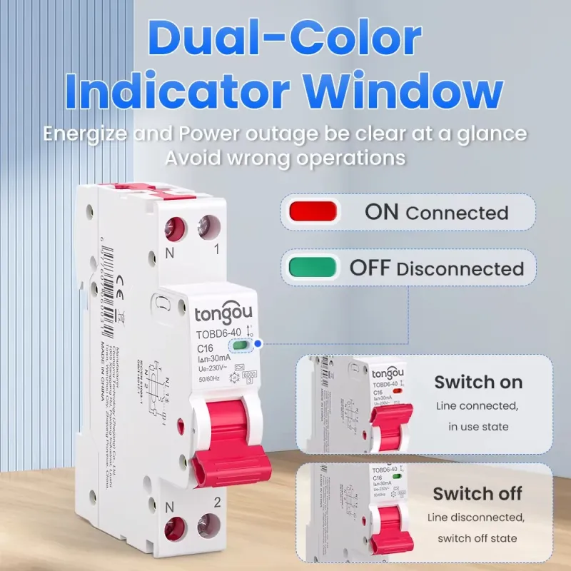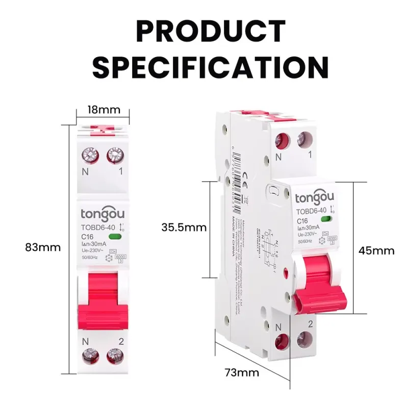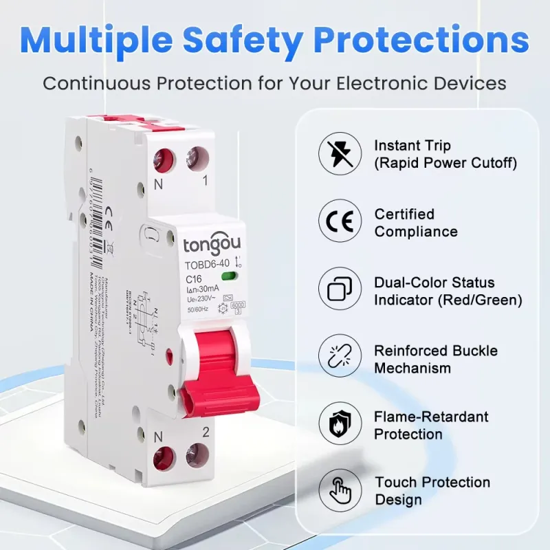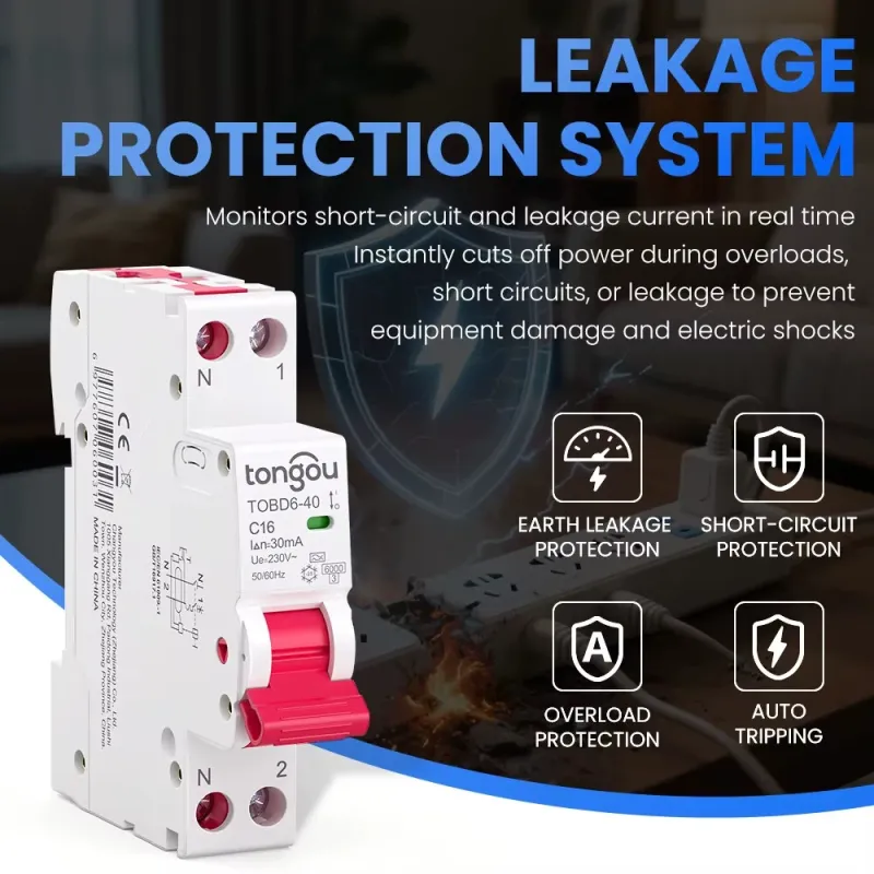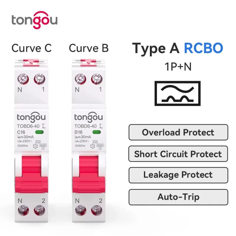 Tongou 16A/40A RCBO Residual Current Circuit Breaker 1P+N Type-B/C Curve 30mA Leakage Overload Protection Short Circuit Protection