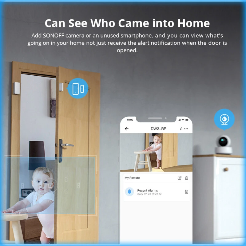 SONOFF DW2-RF 433MHZ RF Wireless Door Window Sensor Detector Door Opening Sensor eWeLink App Smart Home Security