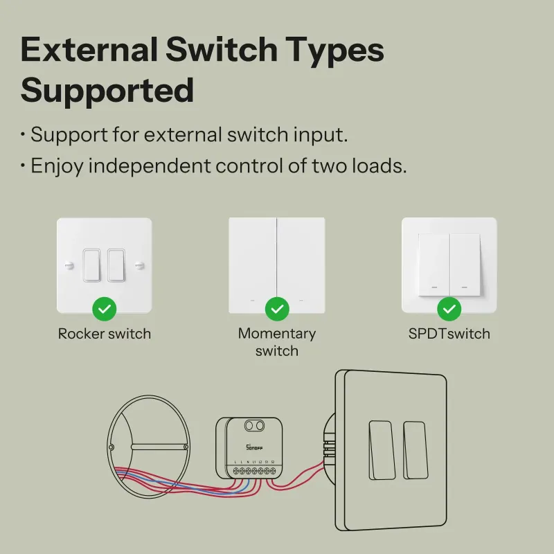 SONOFF MINI-2GS MINI DUO 2-Gang Matter Over WiFi Smart Switch Dual Load Control Detach Relay Mode Compatible Alexa Apple Home