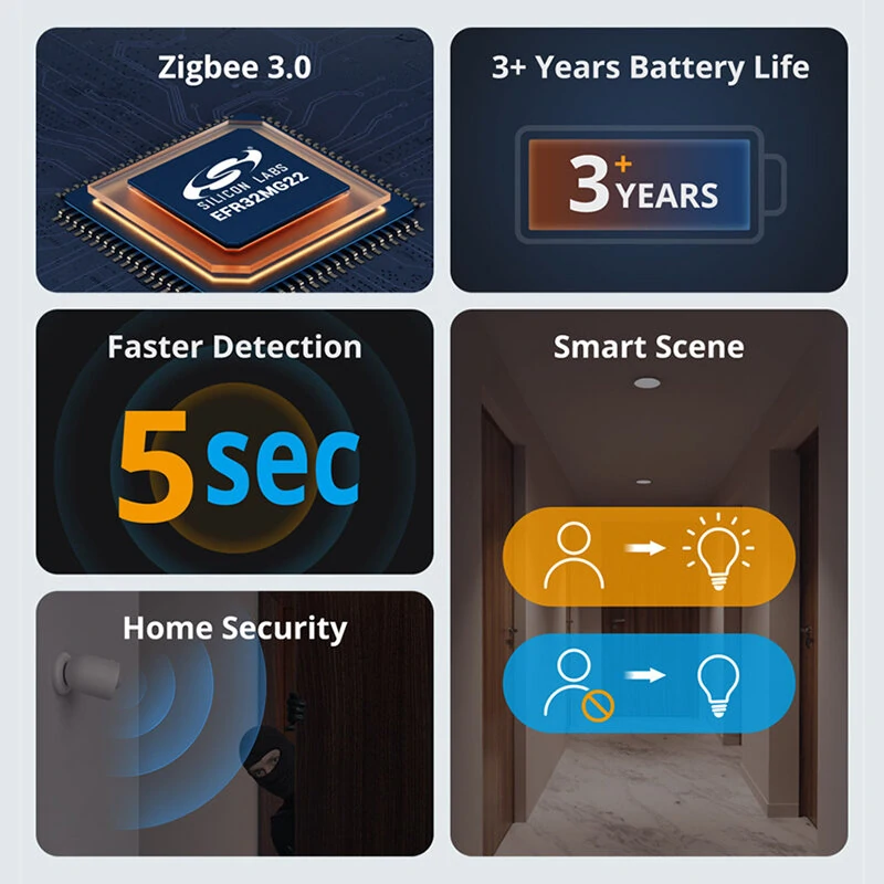 SONOFF SNZB-03P Zigbee3.0 Motion Sensor 5-Seconds Faster Detection Smart Home Security Human Body Detection Smart Scene via eWeLink Work with Alexa Google Home